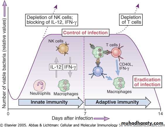 Innate and Adaptive ImmunityThe innate immune response to intracellular bacteria consists mainly of phagocytes and NK (natural killer) cells.