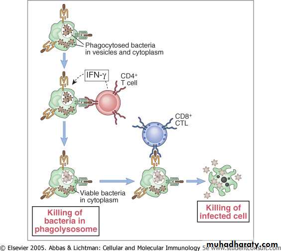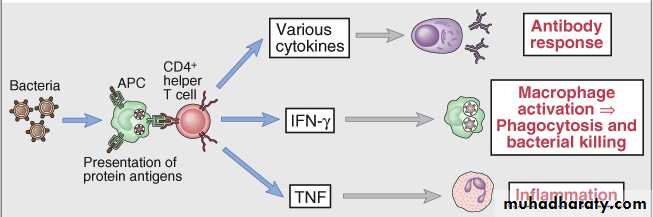 • D4+ produces cytokines that induce local inflammation and activate phagocytic function and microbicidal activities of Macrophages and Neutrophiles