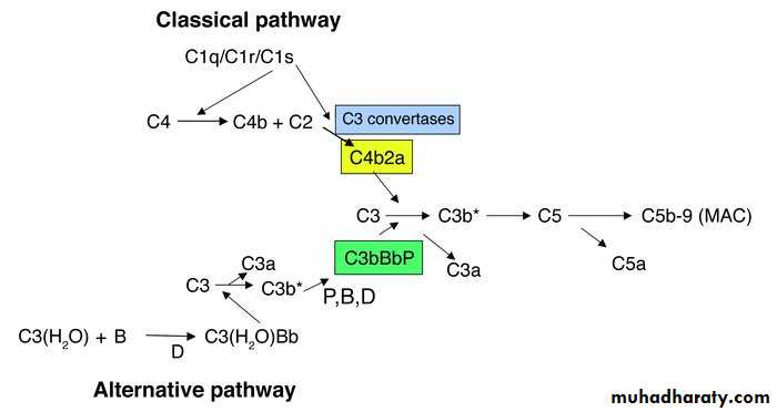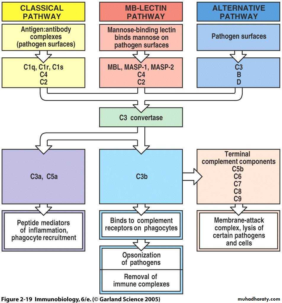 The activation of the three pathways produces similar effects on C3 and subsequent complement proteins.