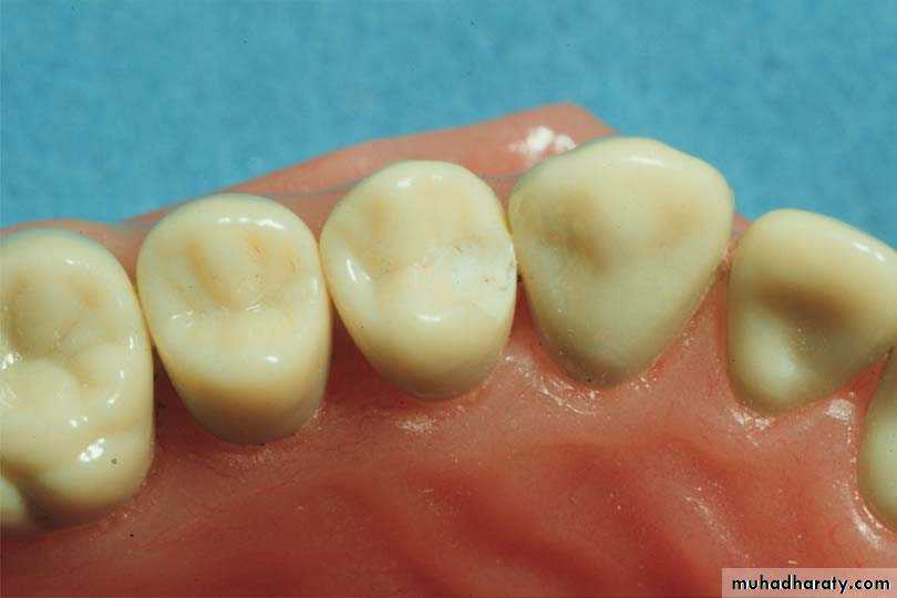 a- Bulbous shape of the crowns of natural teeth resulting in buccal and lingual undercuts, fig.b- The inclination of the long axes of teeth in relation to a vertical line drawn from the occlusal surface, resulting in undercut on the proximal surfaces of these teeth, fig.