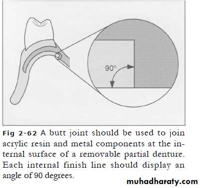 Butt joint with slight undercut in metalMaximum bulk of the acrylic resin