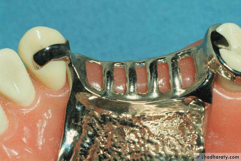 Minor connectors originating from the gridwork in an edentulous areaBroad contact with guiding planes