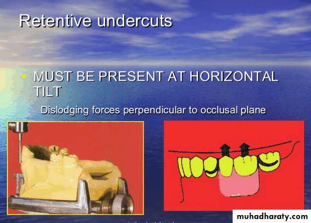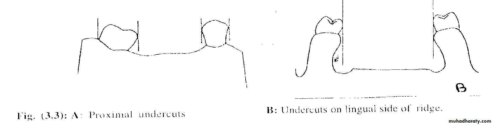 1) Desirable undercuts :Desirable undercuts are used for retaining the partial denture against dislodging forces usually by incorporating retentive flexible clasp arms, less frequently by the denture base engaging a tissue or bony undercut.