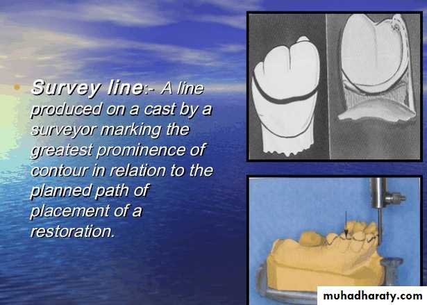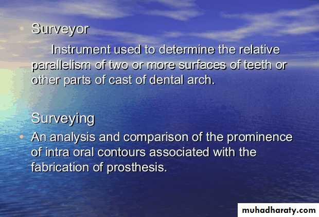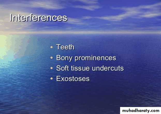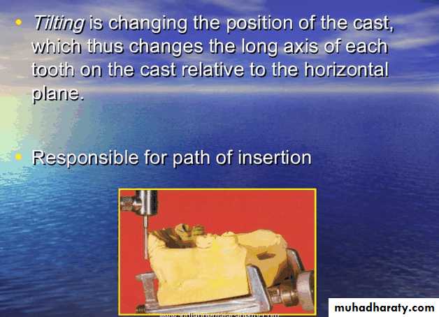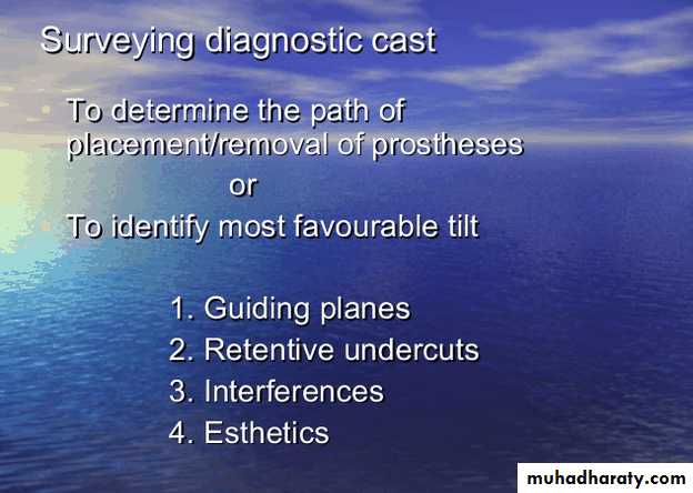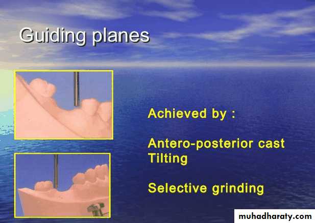 Tillting, path of insertion and removal, interference, under cut ,esthetic, guid planes,