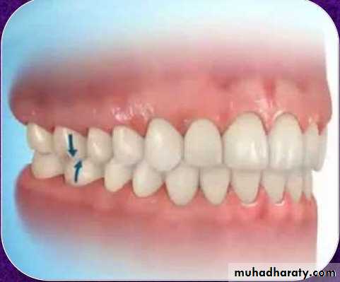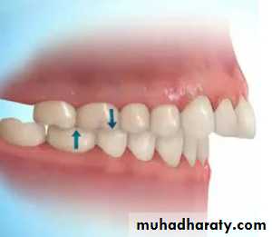 Abnormal condition in which group of teeth do not make occlusal contact because of lack of vertical extension.(Swinehart)I- Open bite
