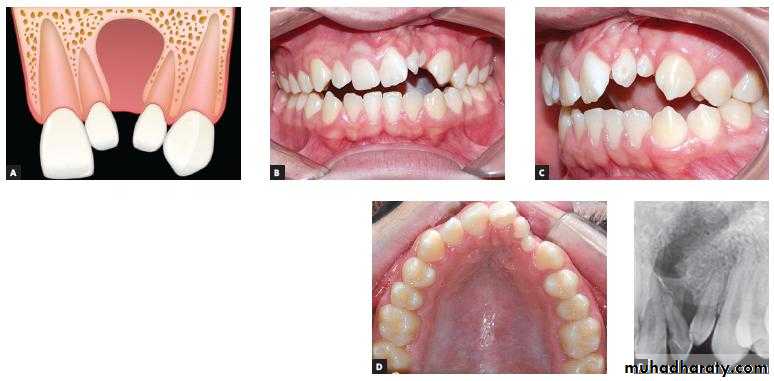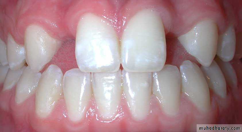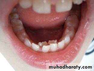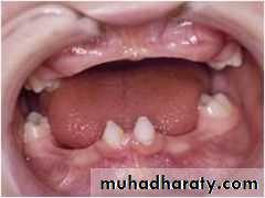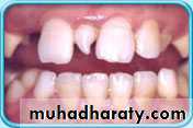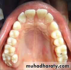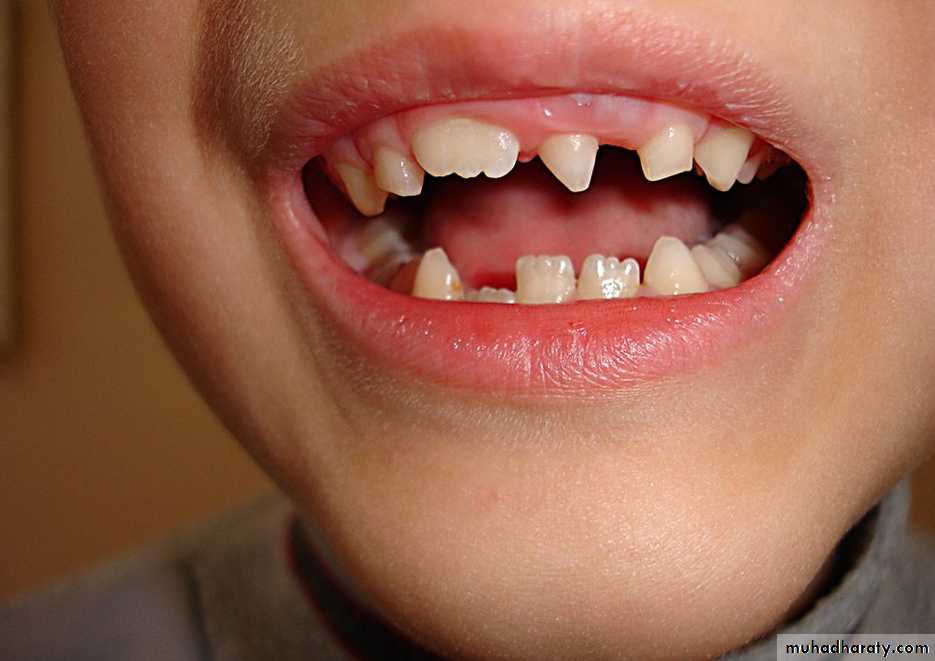3. Anadontia: ( completely absence of teeth due to aplasia of dental lamina)4. Hypodontia:hypodontia is the condition at which the patient has missing teeth as a result of the failure of those teeth to develop (also called tooth agenesis). ( rare in deciduous but common in permanent dentitions)Include lateral incisos , second premolars, and third molar (in Iraq 5%)Rx; close space or open space and use P.D.