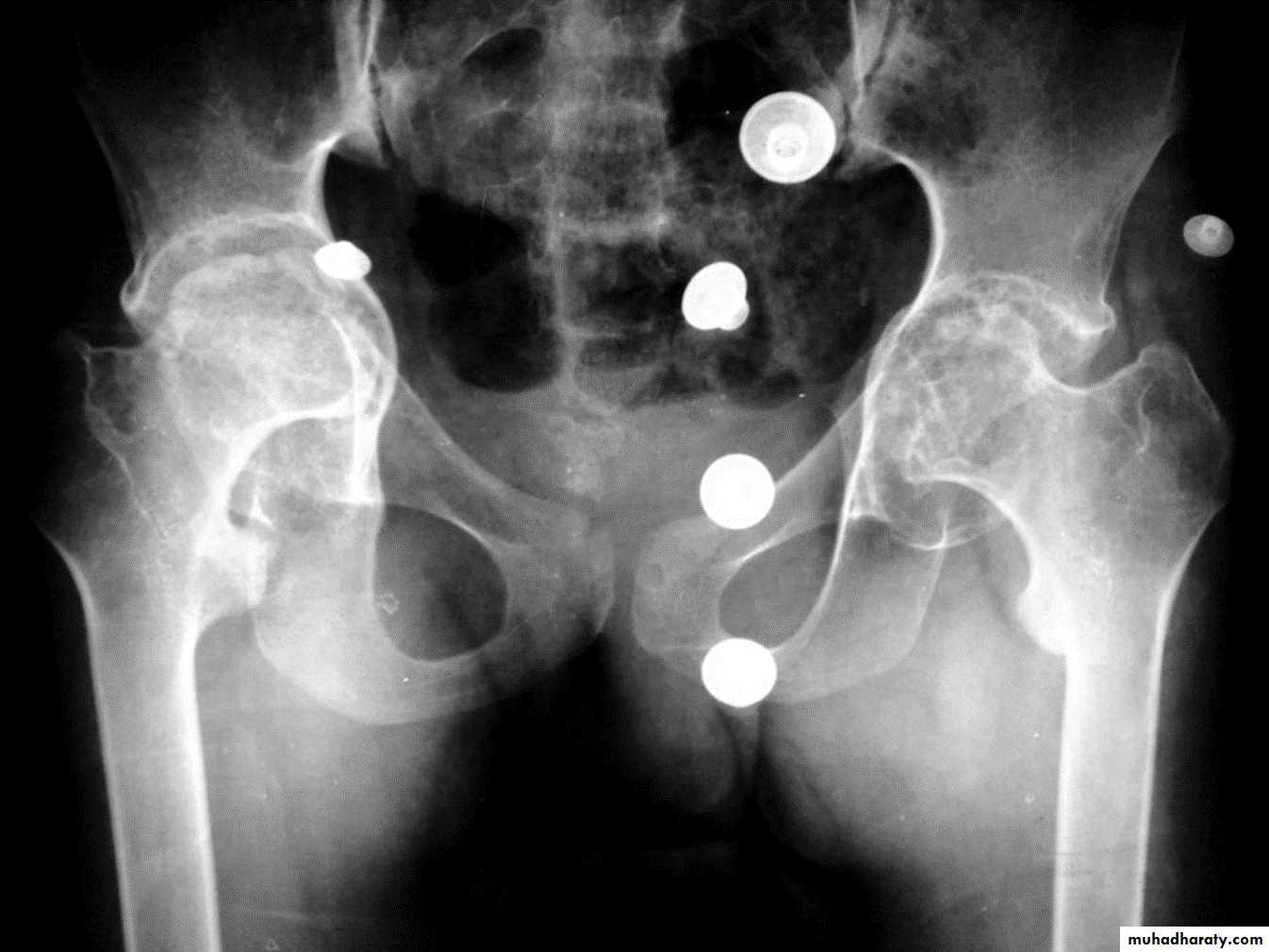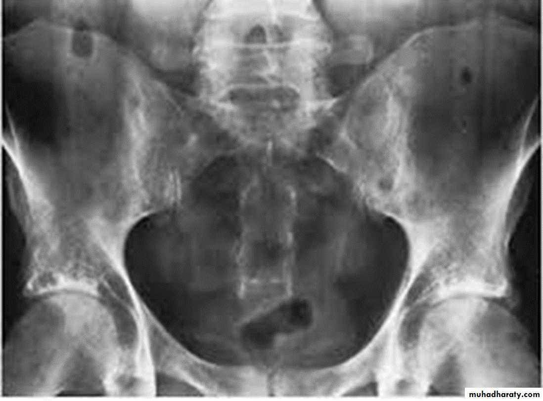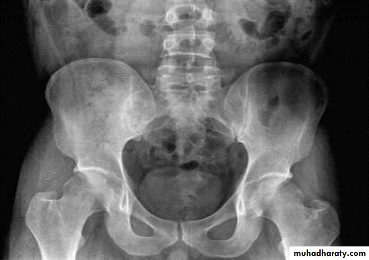 * Arthritis of proximal joints (hip > shoulder) in 50% ,erosions and osteophytes