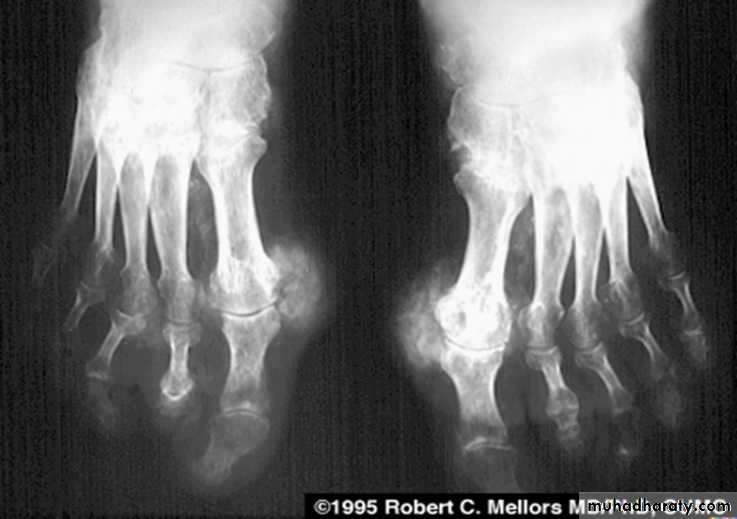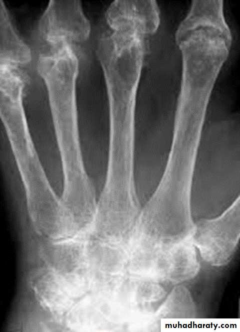 *Peri articular osteoporosis in symmetrical distribution (hallmark)
