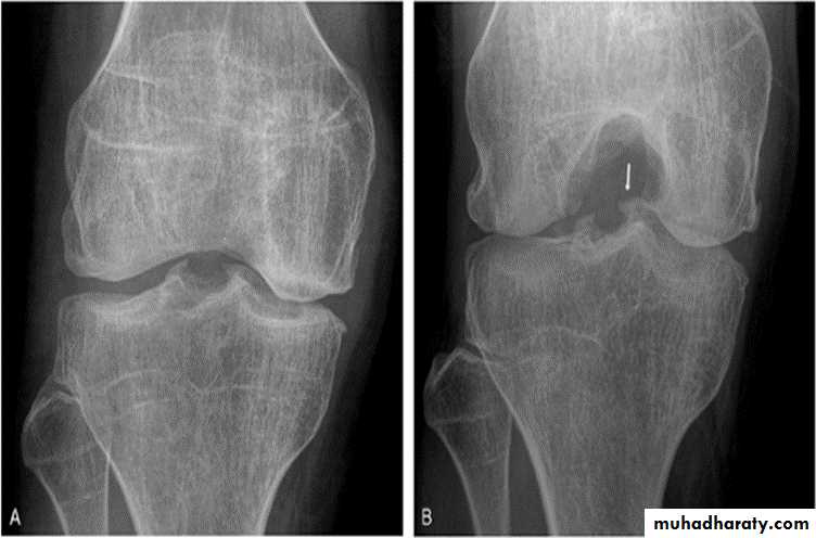 There are three types of arthritis(which often can be distinguished radiologically):1- Degenerative joint disease