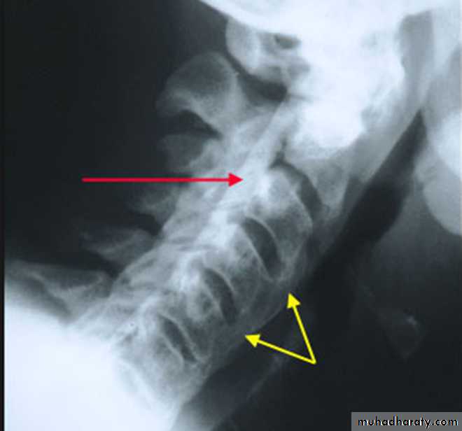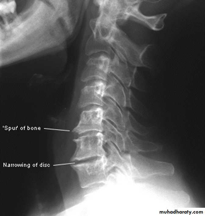 * Lower cervical and low lumbar spine are most comonly affected.* Osteophytes may encroach on neural foramina (best seen on oblique views).