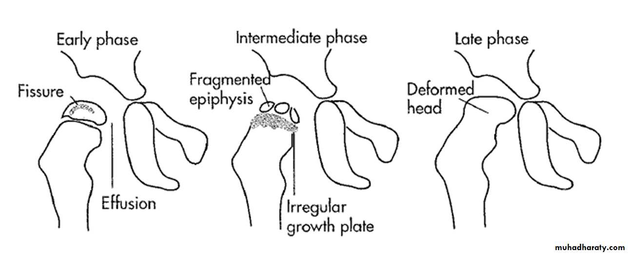 Legg-Calve-Perthes disease : osteochodrosis of the femur headUsually affects 5-10 years , started as hip pain , if not treated it will ends with mushroom deformity due to neglected and untreated perthis seen later on and is liable for early OA chnges .
