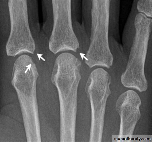 * Erosions may have sclerotic borders