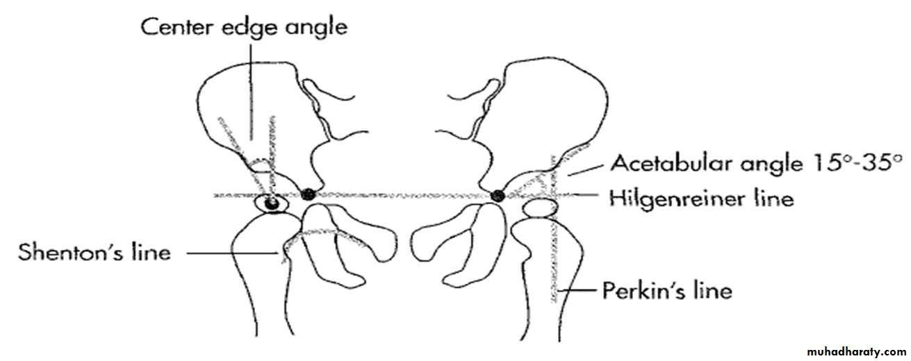 * Normal femoral head is covered at least 50% by acetabulum , In CDH < 50% of femoral head is covered by acetabulum .