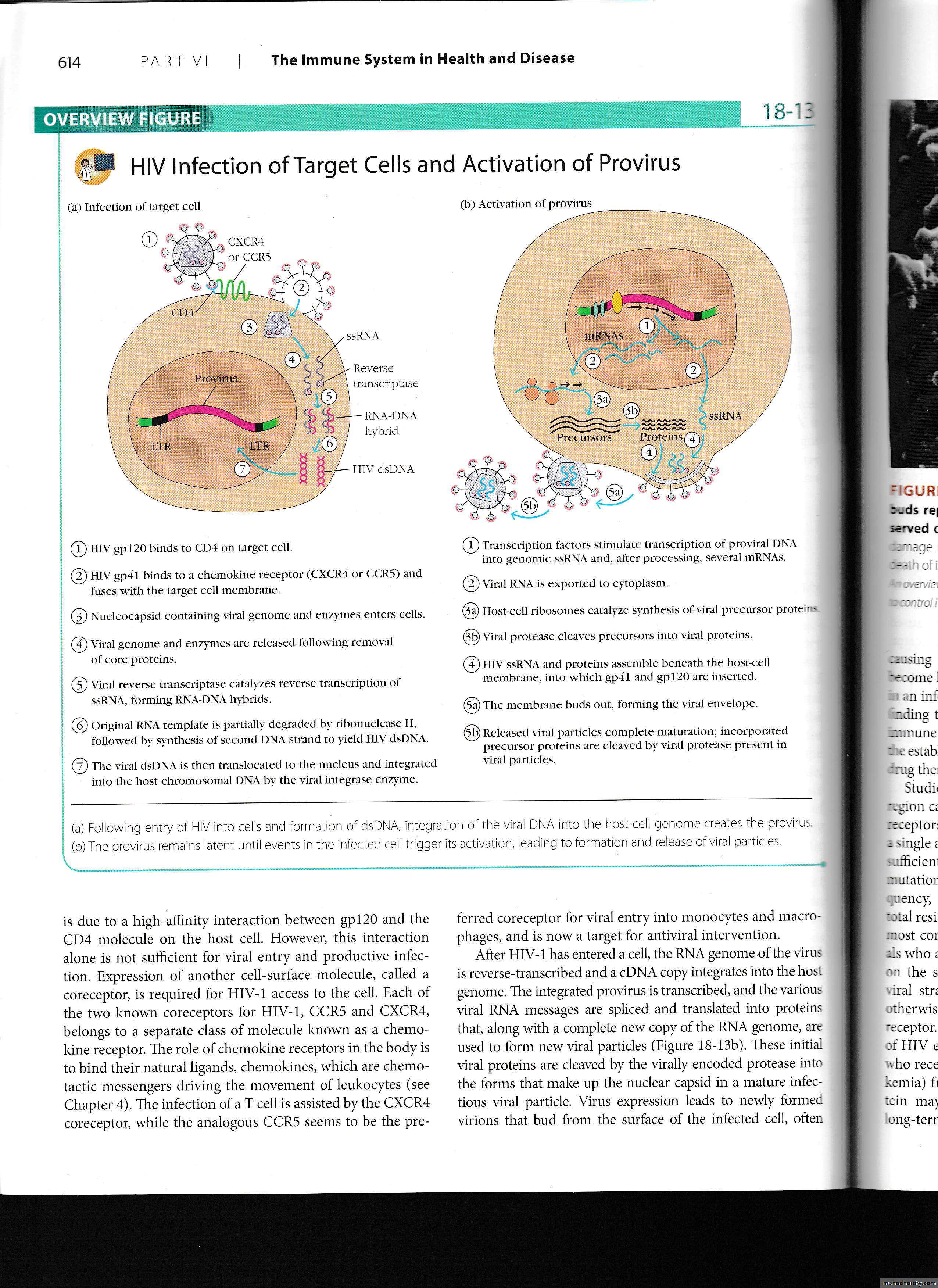 First stage includes the integration of viral genome into the cellular DNA as following:HIV gp120 receptor binds to CD4 on target cells