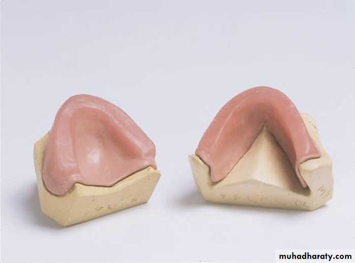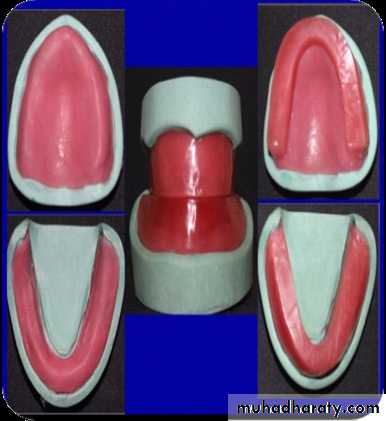 Temporary record basesThey are discarded and replaced by denture base material, once their role is establishing jaw relation, Teeth arrangement and try in complete.