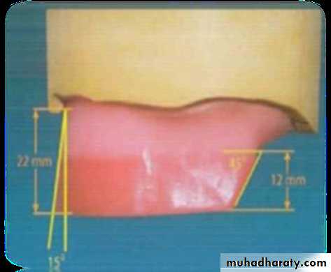 Posterioly the occlusal plane starting from the canine region backward should be parallel to the (camper´s line), this is a line running from the ala of the nose to the superior border of the tragus of the ear (ala-tragus line).