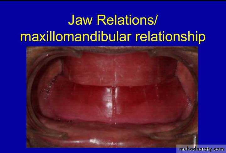 Record base :is the temporary unit representing the base of a denturث esenting the base of a dentureesenting the base of a denturee to record the relationship of the mandible to the maxilla and to arrangement the teeth in wax for trial insertion in the patient mouth .