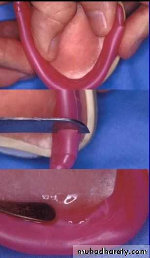 3.Trim the extra base plate from the master cast .4.Cure the record base in triad curing unit for 4 mins .