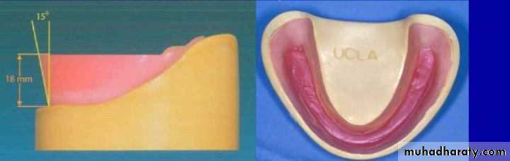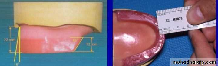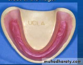 -The mandibular wax rim is fabricated in a similar manner, the rim should be centered over the crest of ridge and lingual contours must not impinge on the tongue space.