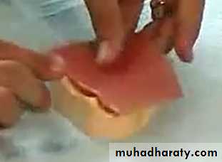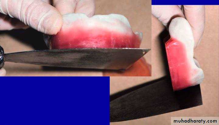 -Heat the occluasl plane former in the flame and carefully form the occlusal aspect of the rim