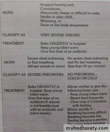 Infants less than 2 months of age are referred to as young infants. They have special characteristics that must be considered when their illness is classified. They can become sick and die very quickly from bacterial infections, are much less likely to cough with pneumonia, and frequently have only non specific signs such as poor feeding, fever or hypothermia.Classifying illness of young infant