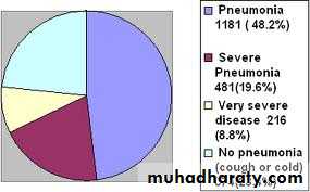 The most important signs to consider when deciding if the child has pneumonia are the child’s respiratory rate, and whether or not there is chest indrawing may not have fast breathing if the child becomes exhausted, and if the efforts needed to expand the lungs is too great.In such cases , chest indrawing maybe the only sign in a child with severe pneumonia. A child with chest indrawing is at higher risk of pneumonia than a child with fast breathing alone.
