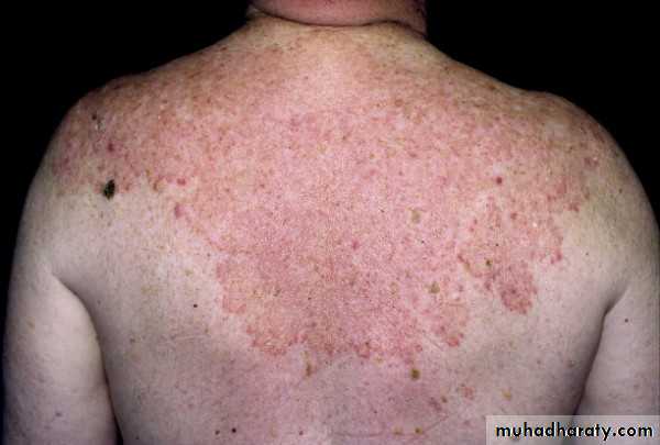 There may be multiple cases within a family, and each person may have a different infection pattern which may be due to specific host T-lymphocyte response.• Noninflammatory grey patch pattern