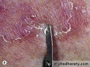 Typically the active border is scaly, red, and slightly elevated.