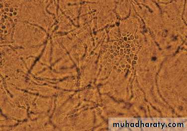 One very characteristic pattern of inflammation is the active border of infection.The highest numbers of hyphae are located in the active border, so samples are taken from here.