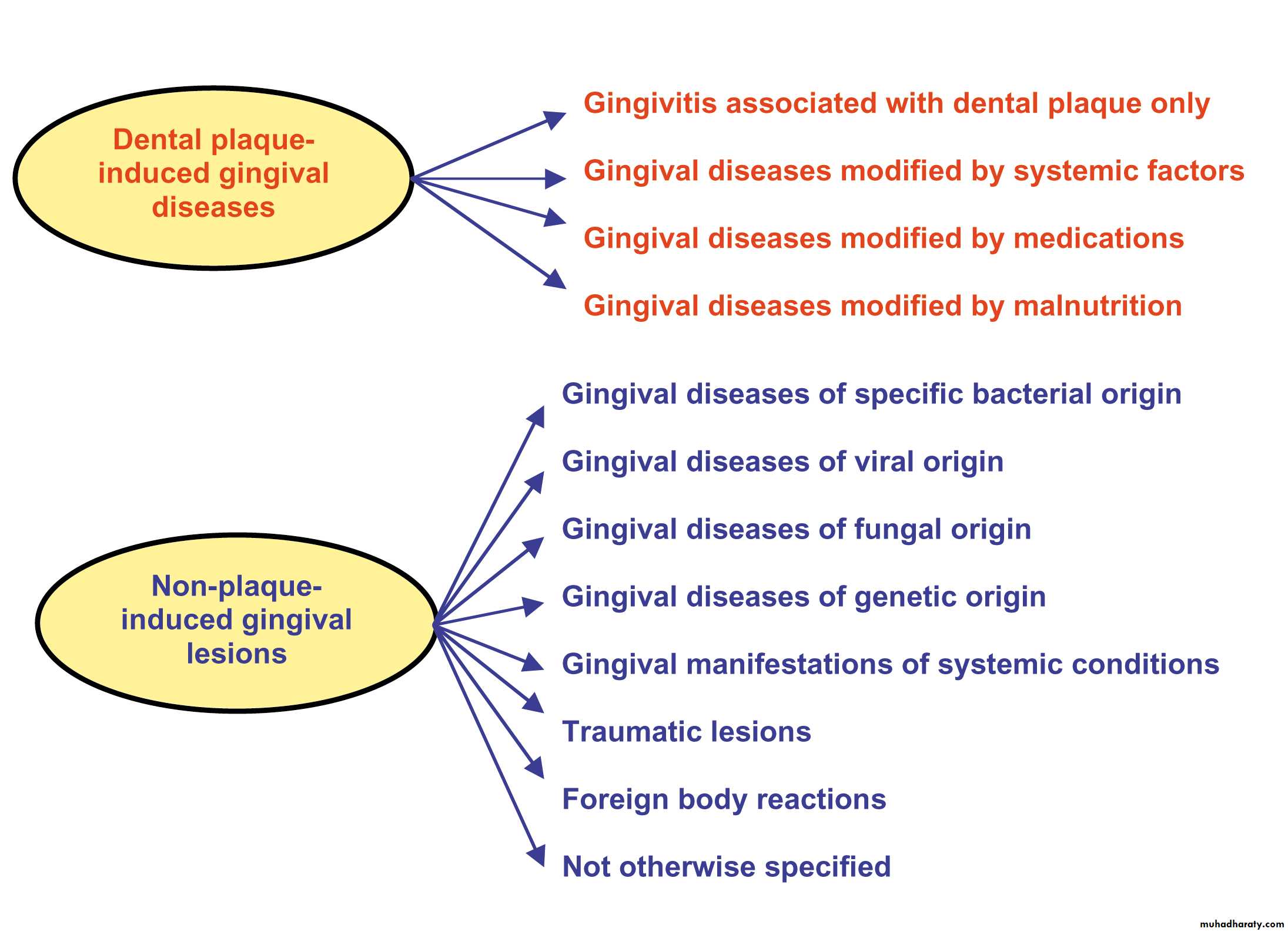 4. Gingival diseases of genetic origin5. Gingival manifestations of systemic conditions
