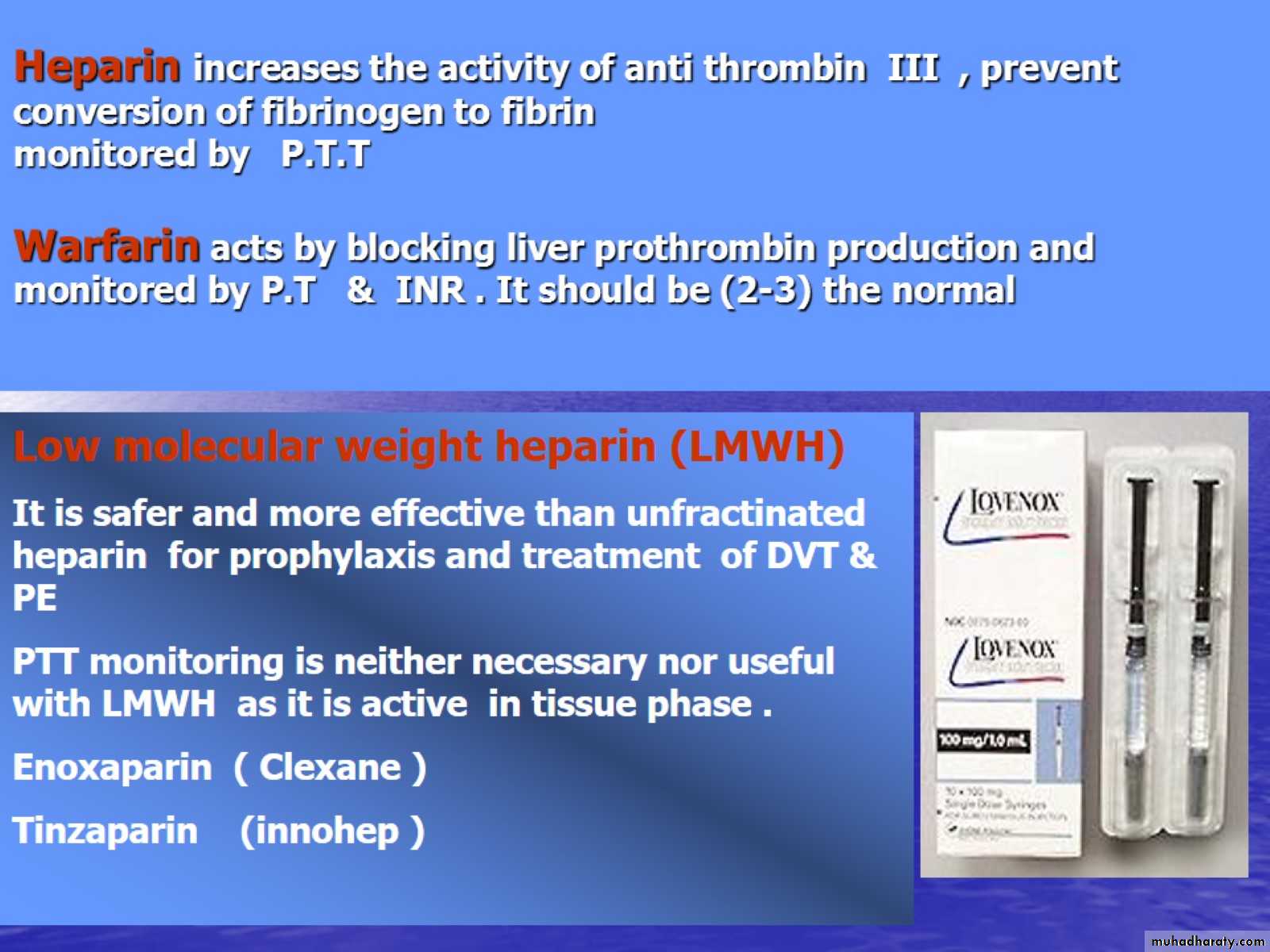 Heparin increases the activity of anti thrombin III , prevent conversion of fibrinogen to fibrin monitored by P.T.T