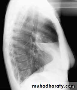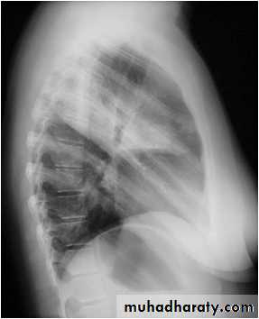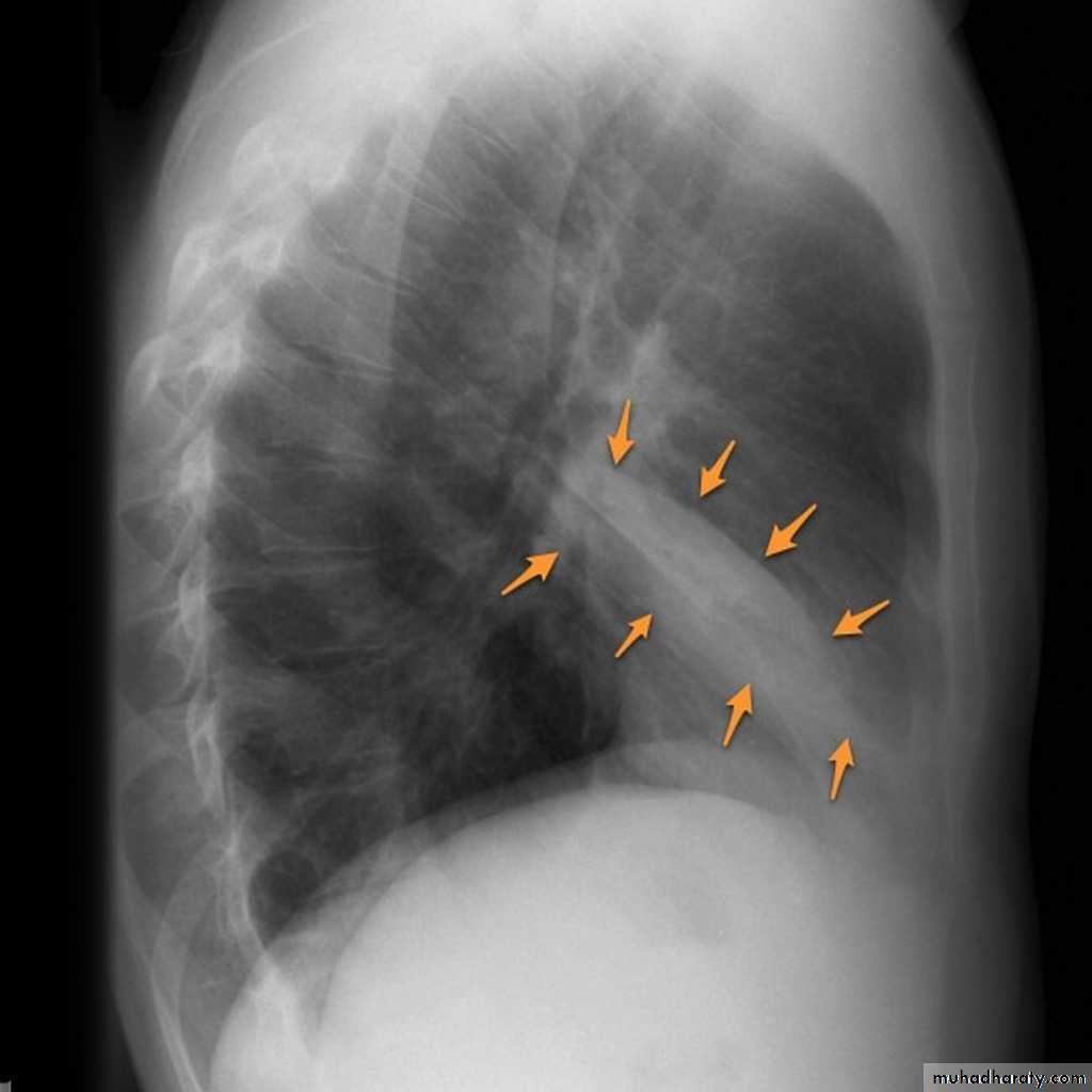 This cut-out of a lateral chest x-ray shows the positions of the lobes of the right lung