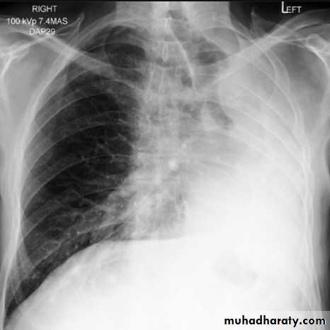 Non-specific signs indicating right sided atelectasis are also usually present including: