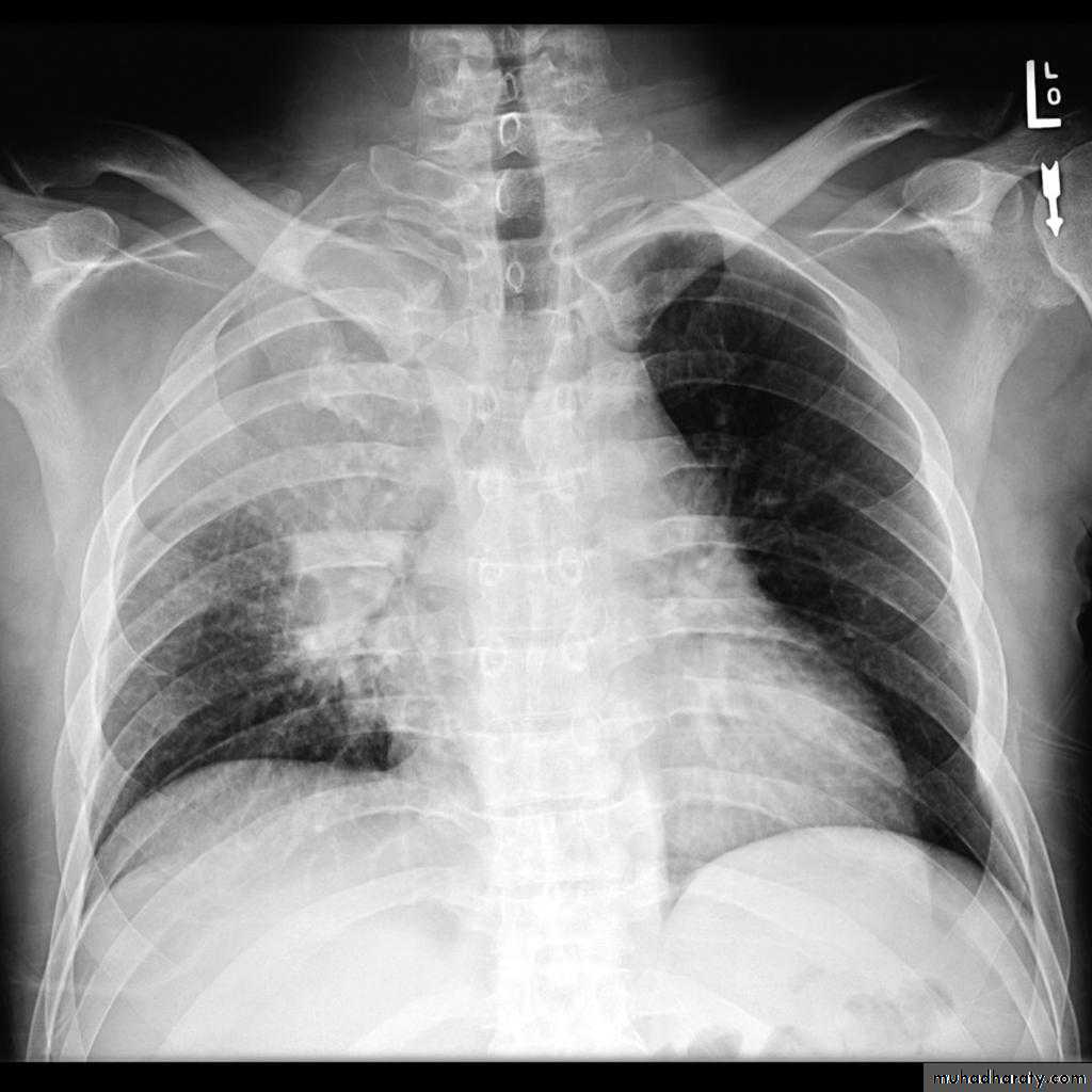 RadiographThe appearance on chest x-ray varies according to the lobe involved and are discussed separately: