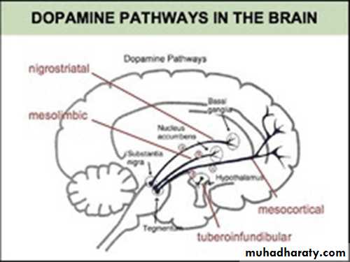 Extrapyramidal effects: Dystonias (sustained contraction of muscles leading to twisting distorted postures), parkinson-like symptoms, akathisia (motor restlessness), and tardive dyskinesia (involuntary movements of the tongue, lips, neck, trunk, and limbs) occur with chronic treatment. Blocking of dopamine receptors in the nigrostriatal pathway probably causes these unwanted movement symptoms. The atypical neuroleptics exhibit a lower incidence of these symptoms.
