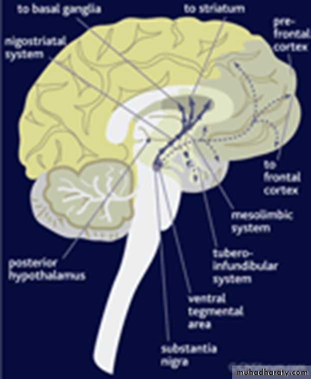 Pathways affected by DA in the Brain
