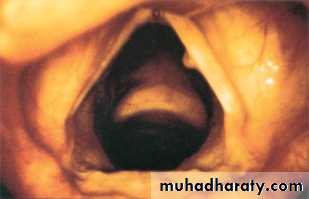 • History.• Examination: mirror or rigid laryngoscopy, fiberoptic exam is important to visualize larynx in normal anatomic state.