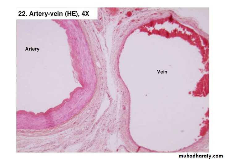 vein medium size: 1- NO Internal nor external elastic lamina2- TA thick consist of collagen f. + longtudinal bundle of SM.