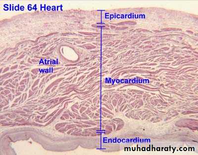 Heart its wall consist of three tunics: internal: endocardium, middle: myocardium, external: epicardium