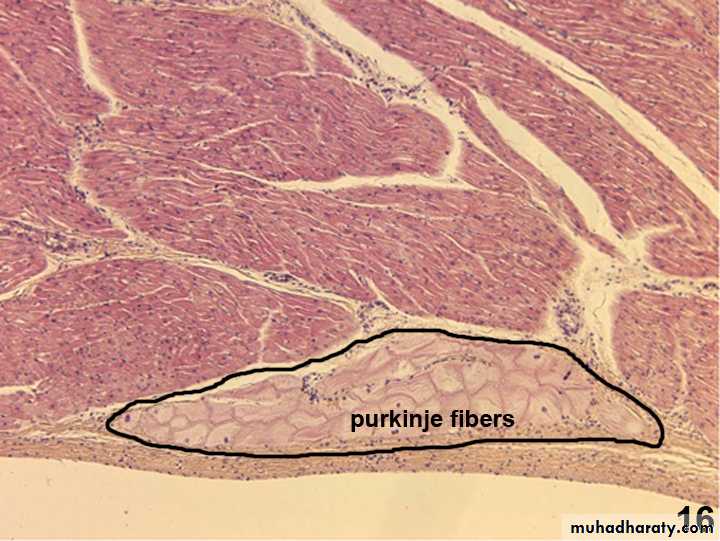 Purkinje fibers resemble ordinary cardiac m. in that:they have central nuclei.they have cross striation. However they differ from them in that