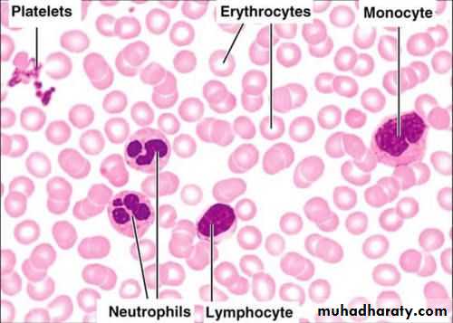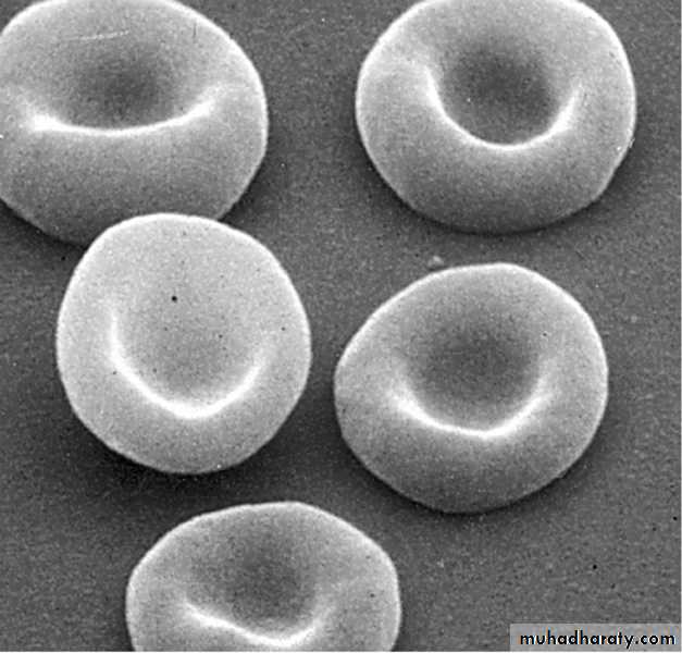 RBC: 1-These are rounded biconcave disks, bright red in color due to the presence of hemoglobin2- RBCs have no nuclei.