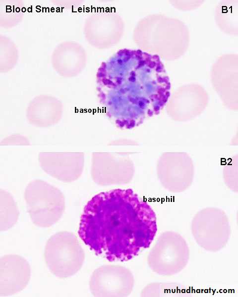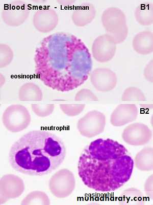 Eosinophil : 1- bilobed nucl.2- esonophil cytopl. Granulebasophil :1-basophil corse granule