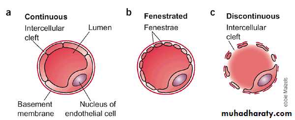 Capillaries : 1-TM replaced by pericytic cell2- no TA.