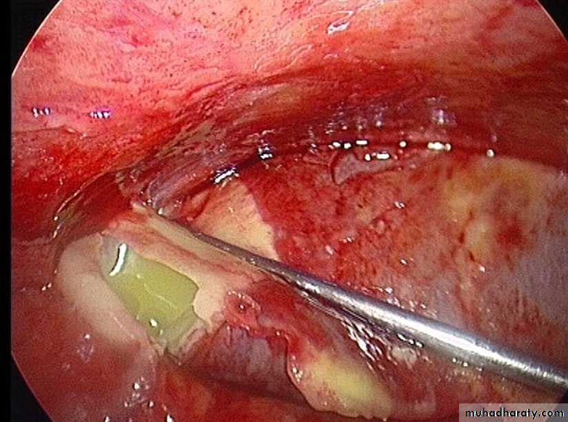 Unless there is reason to suspect that the biliary tract was damaged during operation, it is improbable that bile as a cause of peritonitis will be thought of until the abdomen has been opened. The common causes of bile peritonitis are shown in Summary box.Al-Madena copy