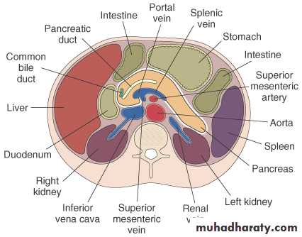 also overlies IVC, L2 vertebra, medial aorta and superior mesenteric vessels