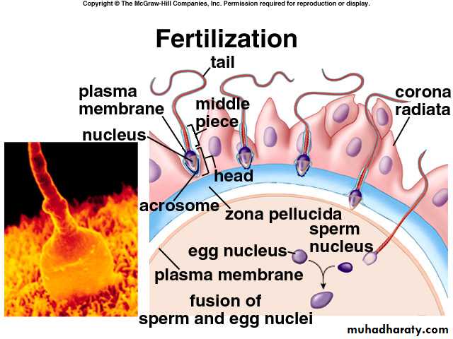 Somatic cells and germ cells somatic cells are diploid - Diploid have 2 copies of each chromosome- Mature germ cell(sperm or egg) have one copy of each chromosome and are haploid.Fertilization:-- The sperm penetrates the cumulus cell layer and subsequently interact with egg-specific surface receptorsin the zona pellucida, a thick glycoprotein sheet covering the cytoplasmic membrane of the egg.
