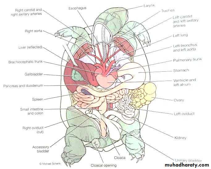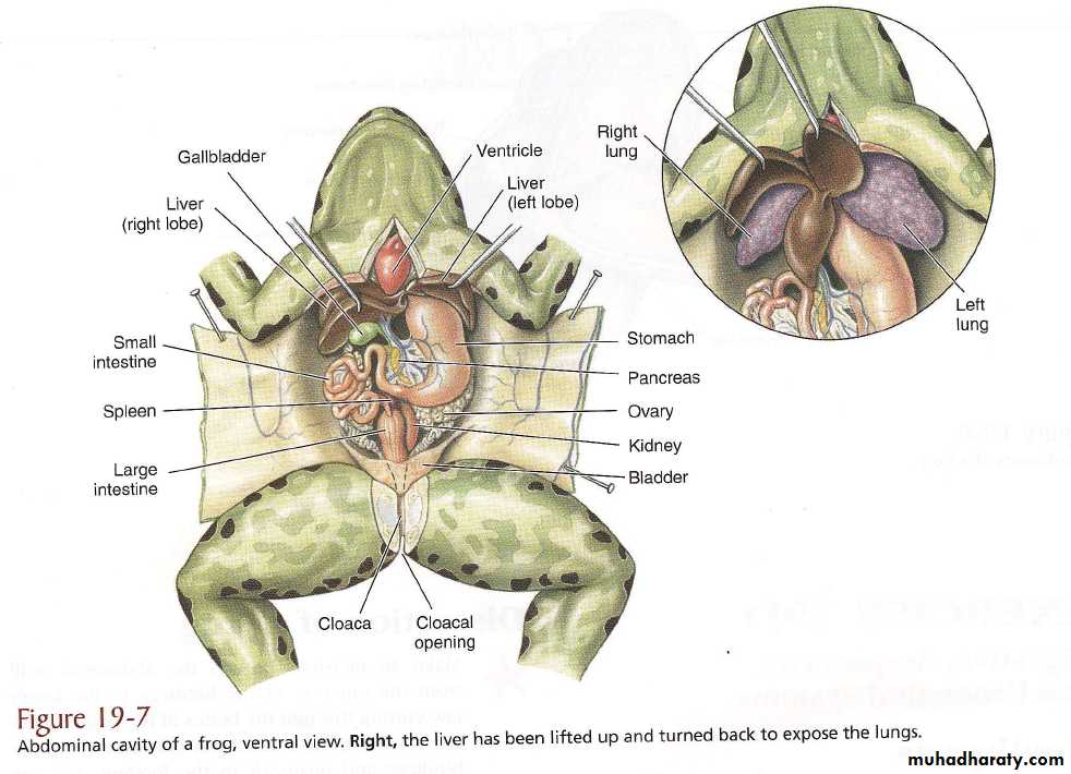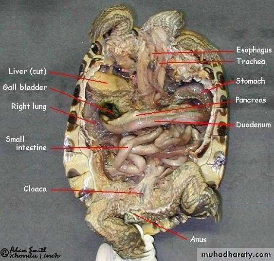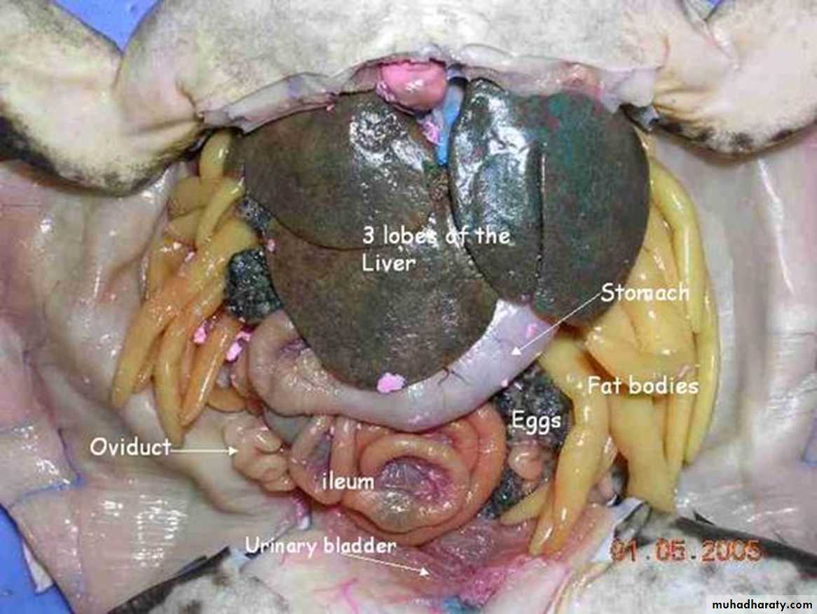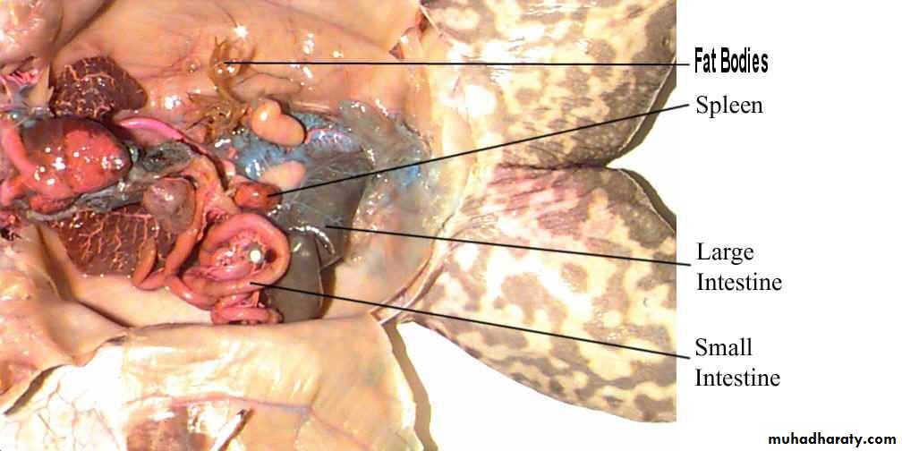 • The intestine is long. Small intestine consists of the duodenum and ileum. Large intestine consists of rectum and opened to the cloacae.