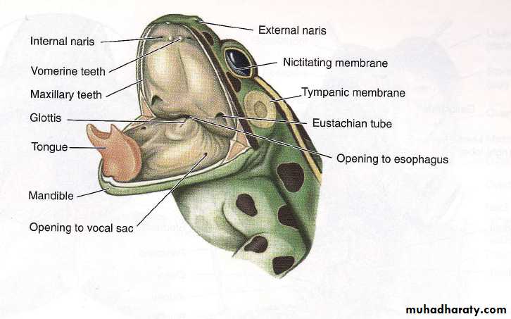 • The mouth opening is lead to buccal cavity.• The esophagus is cylindrical, short (because of the absence of the neck region) and open into stomach.