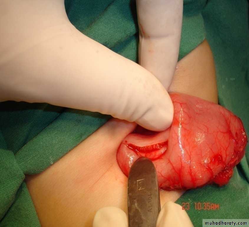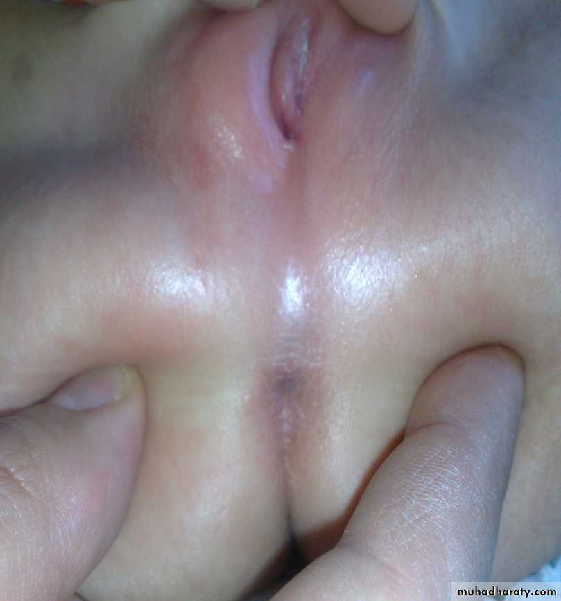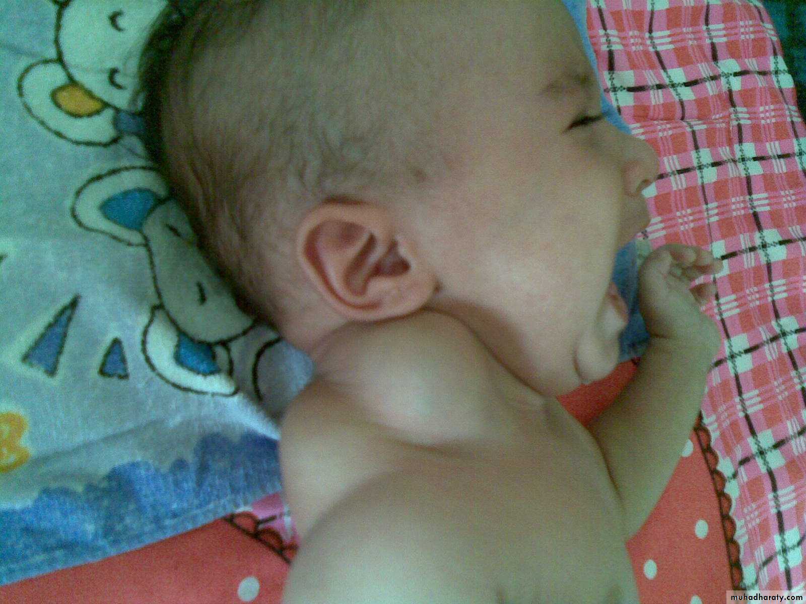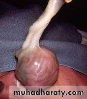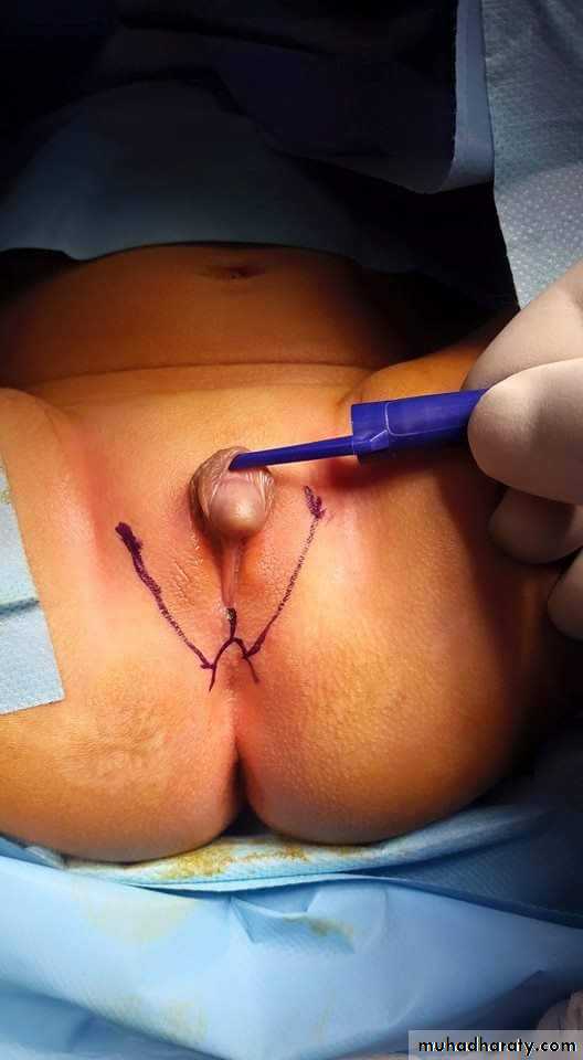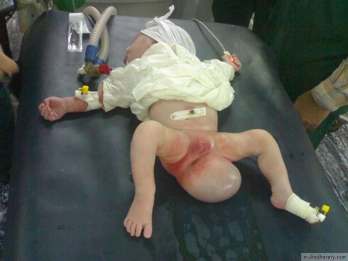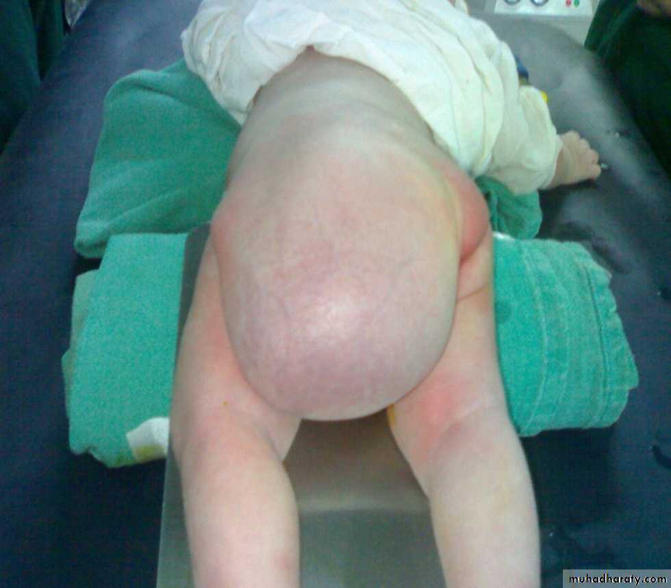 A 3 month old infant born with this congenital abnormality. On examination the mass was not tender with fluctuation1. What is the diagnosis ?2. What is the cause behind it ?3. What are the modalities of treatment ?