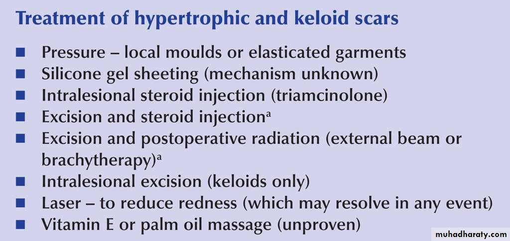 3-keloid .over growth which extend beyond the inscion ,and continue to grow after 6 months.